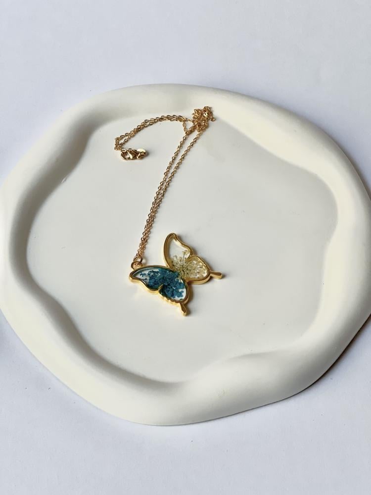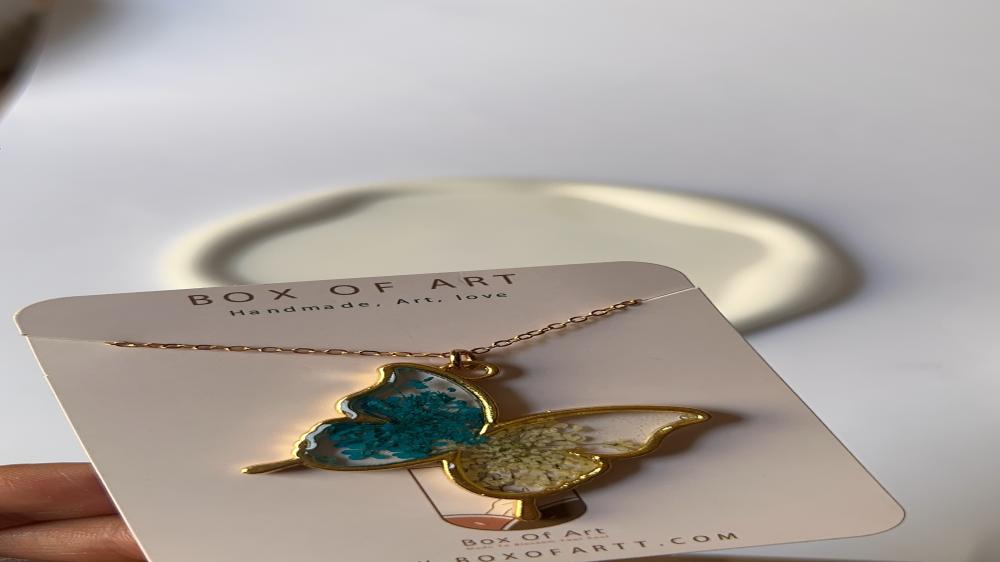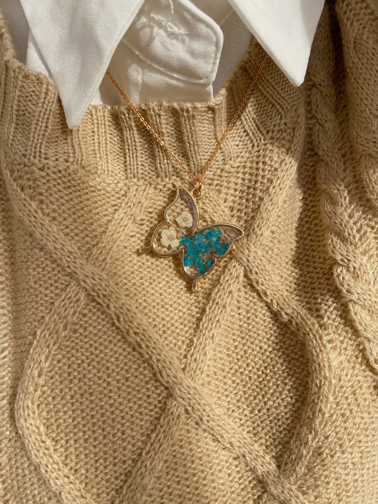 على شاكلة الفراشة، ومن أجمل الأزهار، صنعنا لكِ قلادةَ فراش الزهر، لتجمع بين ألطف وأجمل أشكال الطبيعة، وردٌ وفراشة.. وعنقك، تصميم لايتم تنفيذه إلا في متجرنا.