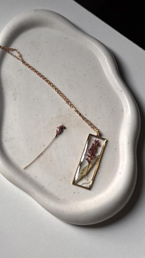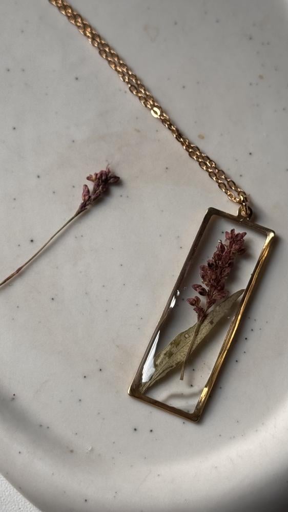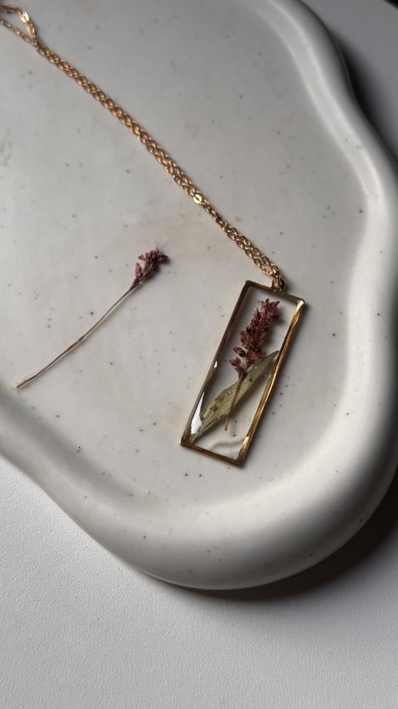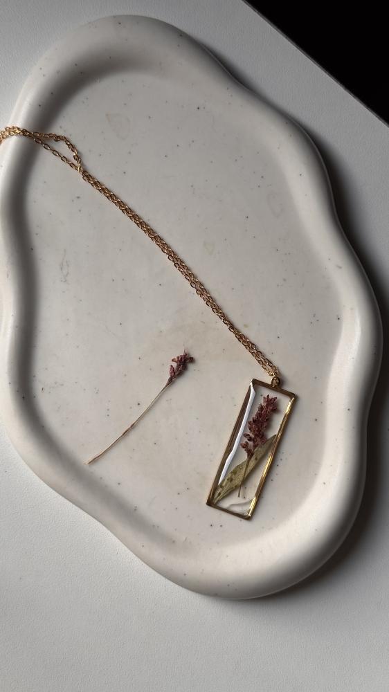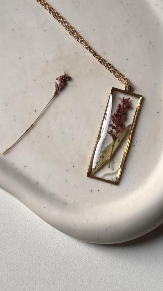 تتزين القلادة بزهرة السورغو البرية المجففة، المعروفة برمزها للقوة والوفرة والازدهار.