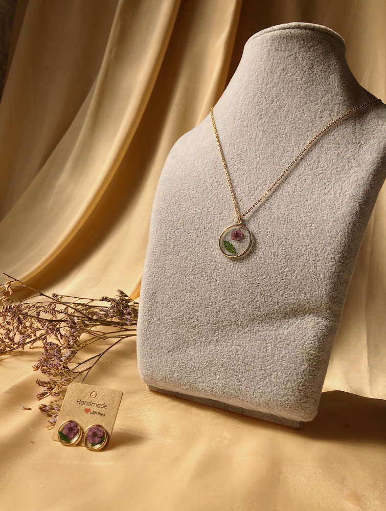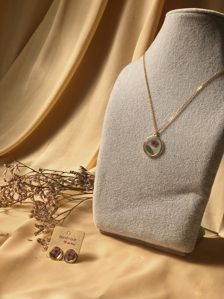 مجموعة عقد وأقراط بالزهر البنفسجي