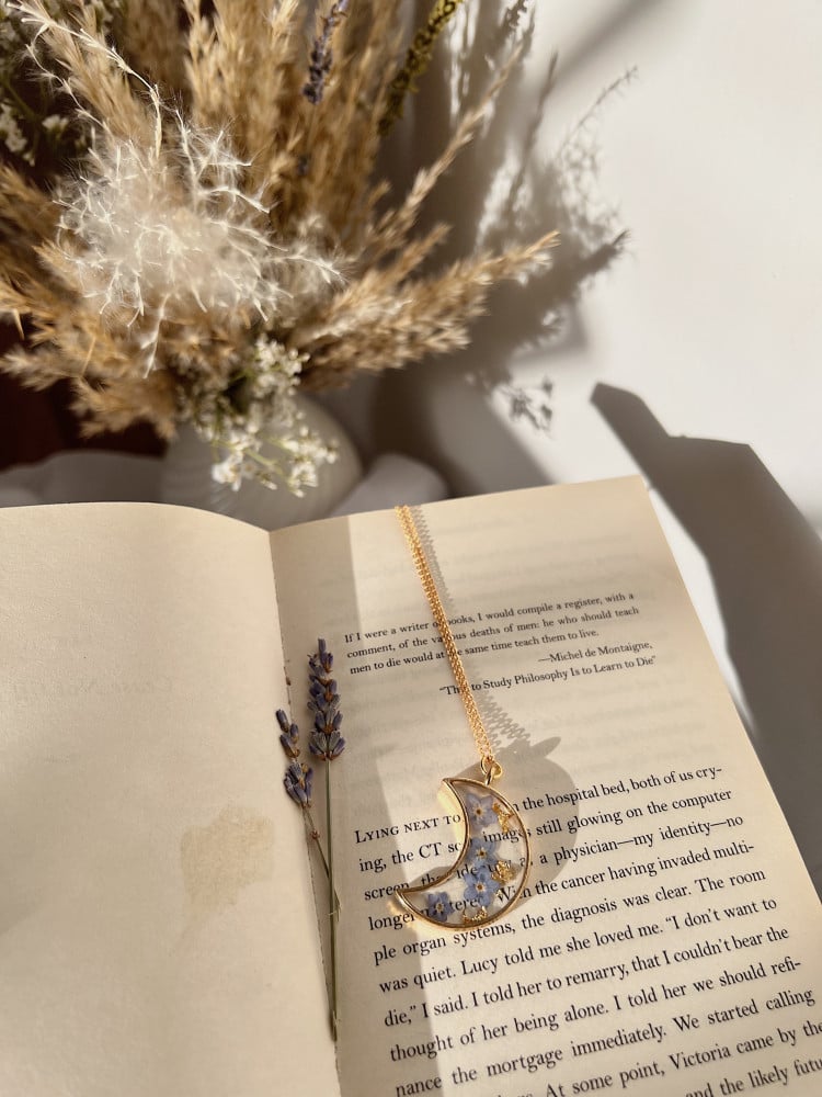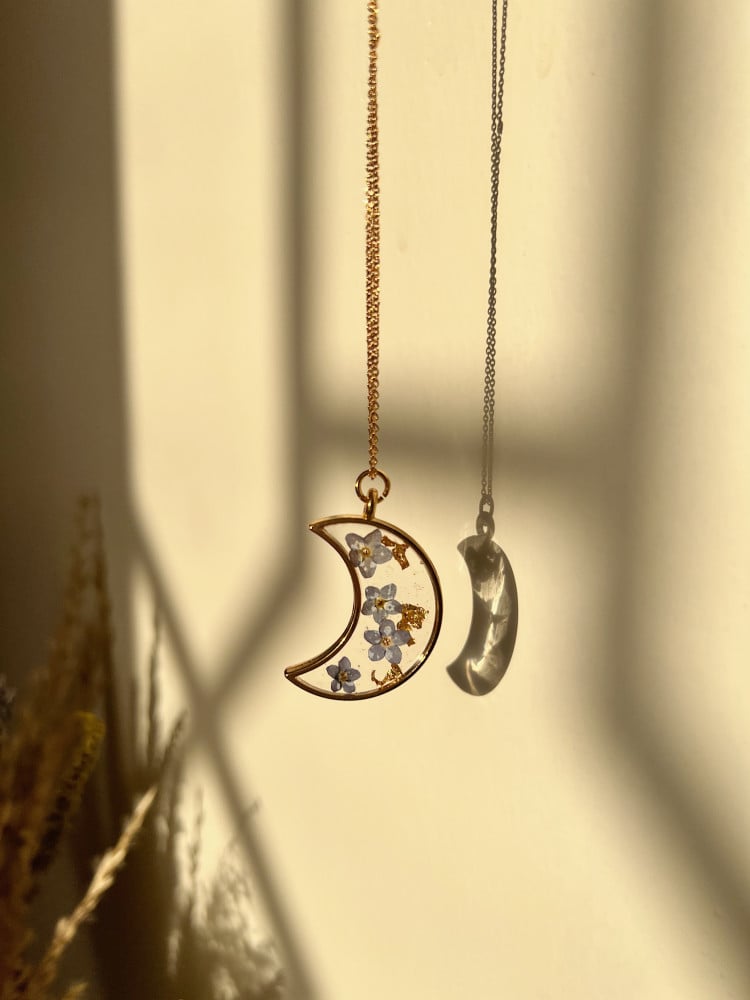 من انشطار القمر، ومن زهرةِ الليلك الوضّاءة.. مزيجٌ ليكون قلادةً وحُليةً لا تُنفّذ إلا من متجرنا.