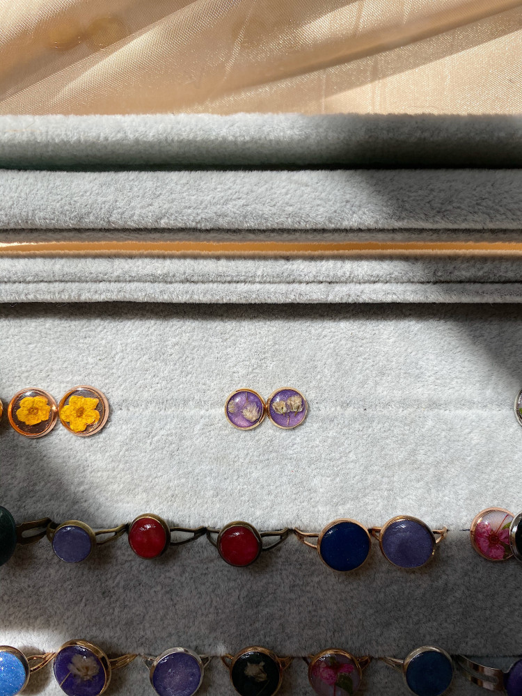 أقراط باللون البنفسجي والأقحوان